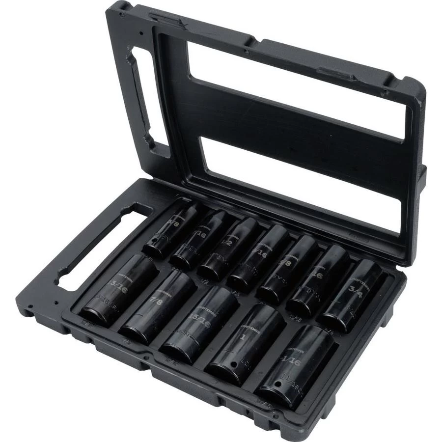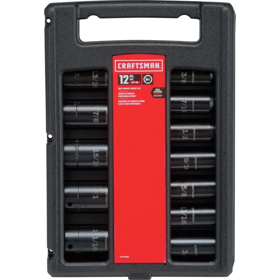 - Includes (12) 1/2-in Drive Deep Impact Sockets SAE (3/8-in, 7/16-in, 1/2-in, 9/16-in, 5/8-in, 11/16-in, 3/4-in, 13/16-in, 7/8-in, 15/16-in, 1-in, 1-1/16-in)