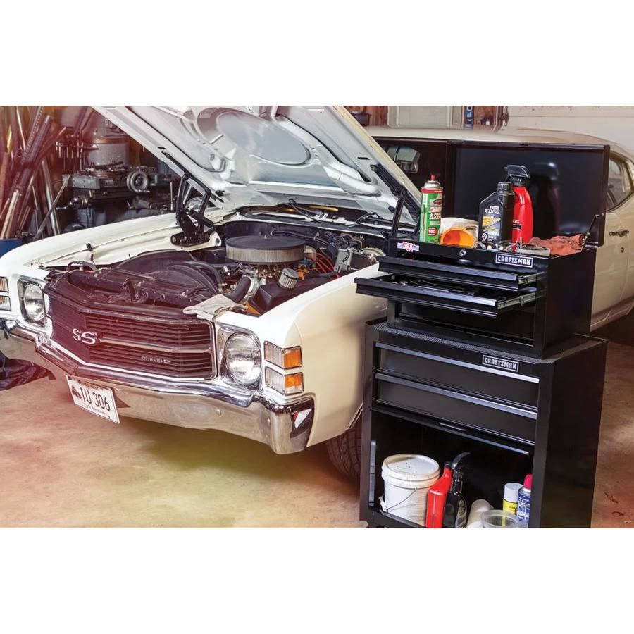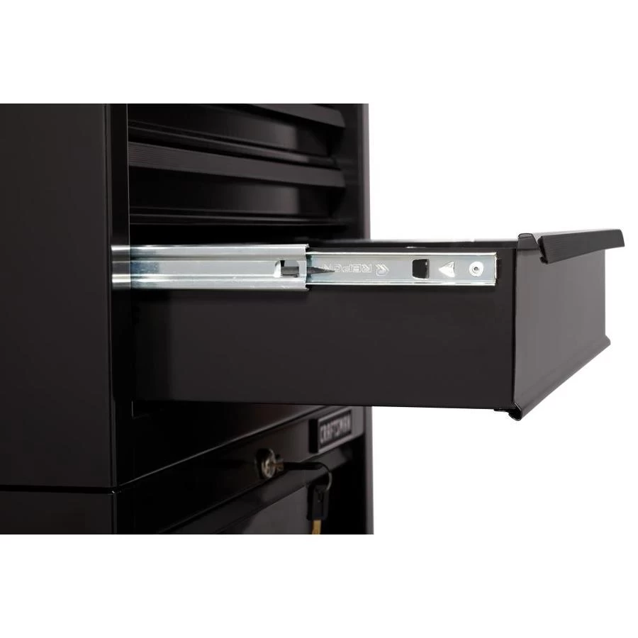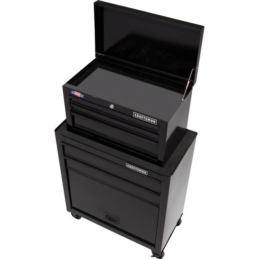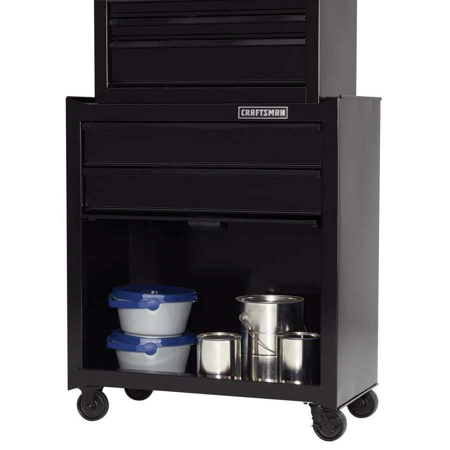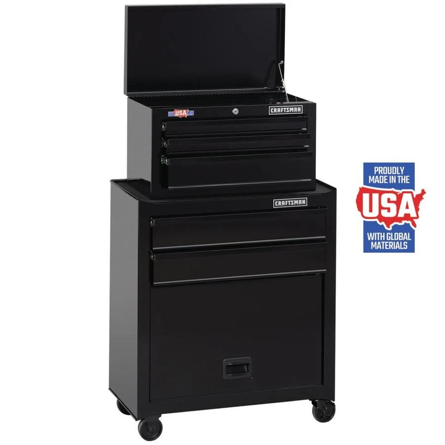 The Craftsman 5-drawer standard duty ball-bearing tool center offers an ideal storage solution for tools and supplies with a thoughtful design and at a great price. With separate top and bottom chests, the tool center offers drawers in varying sizes to store hand tools, power tools, parts and everything in between. The bulk storage area on the bottom offers plenty of space for larger gear such as welding helmets and circular saws. The 5-drawer standard duty ball-bearing tool center features ball-bearing slides, hinged supports, caster wheels, and an external keyed locking system. You get easy, quick access to the tools that you use most frequently. With a simple twist of a key, you have a peace of mind about the security of your gear.