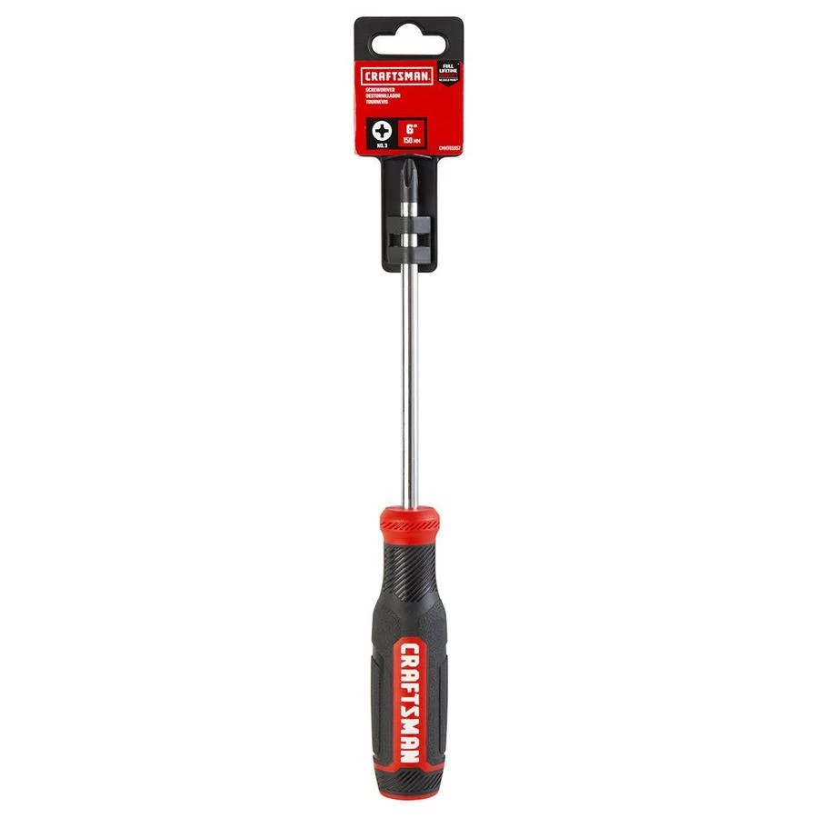 This Craftsman #3 x 6″ bi-material crosstip screwdriver features a black oxide tip for improved durability and grip without compromising tip fitment. The screwdriver handle features 3 specialized sections, depending on the job that needs to be done. First, the speed zone offers fast rotation control for efficient operation. Second, the torque zone provides additional texture and adhesion geometry for heavy torque applications. Finally, the precision tactile zone provides rotational control for precision tasks. This screwdriver can be used for carpentry, electrical, mechanical and plumbing applications, DIY projects or machinery maintenance and upkeep.