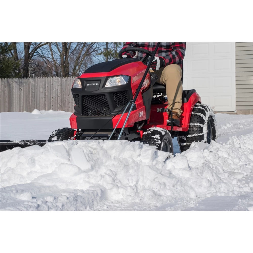 Clearing snow is an easy job with the CMXGZBF7124441 42-in snow blade. The 14-in high blade gives you the ultimate in snow removal. Best for snow falls of 8-in. or less. Will clear sidewalks, paths and driveways without leaving the tractor seat. Weighing only 79 lb the 42-in snow blade is extremely maneuverable and portable for quick convenient storage in your garage or shed. Fits all Craftsman brand tractors, best for 18 to 22-in rear tire models.