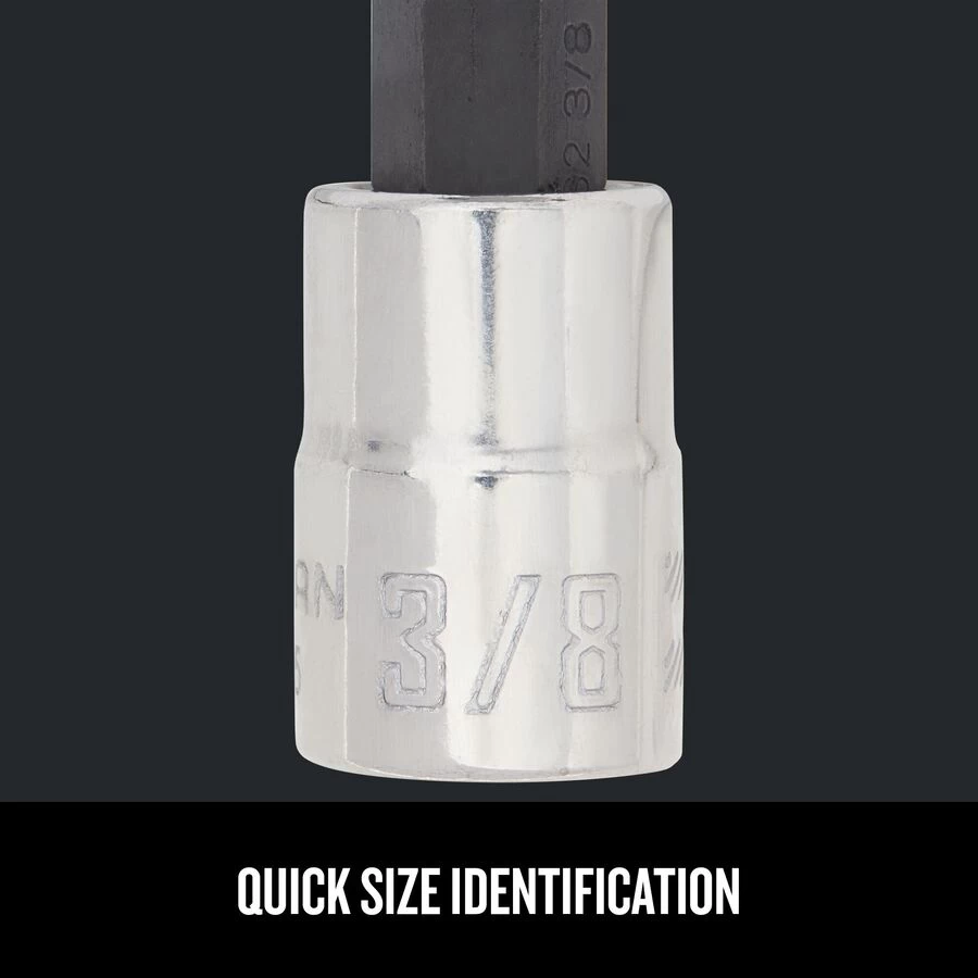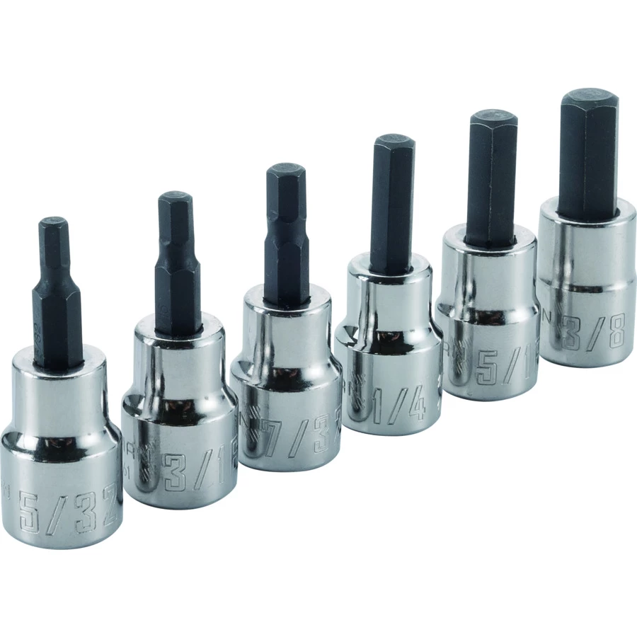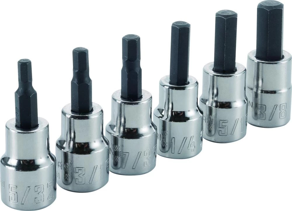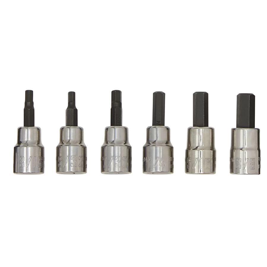 - Includes (6) 3/8-in Dr hex bit sockets SAE (5/32-in, 3/16-in, 7/32-in, 1/4-in, 5/16-in, 3/8-in)