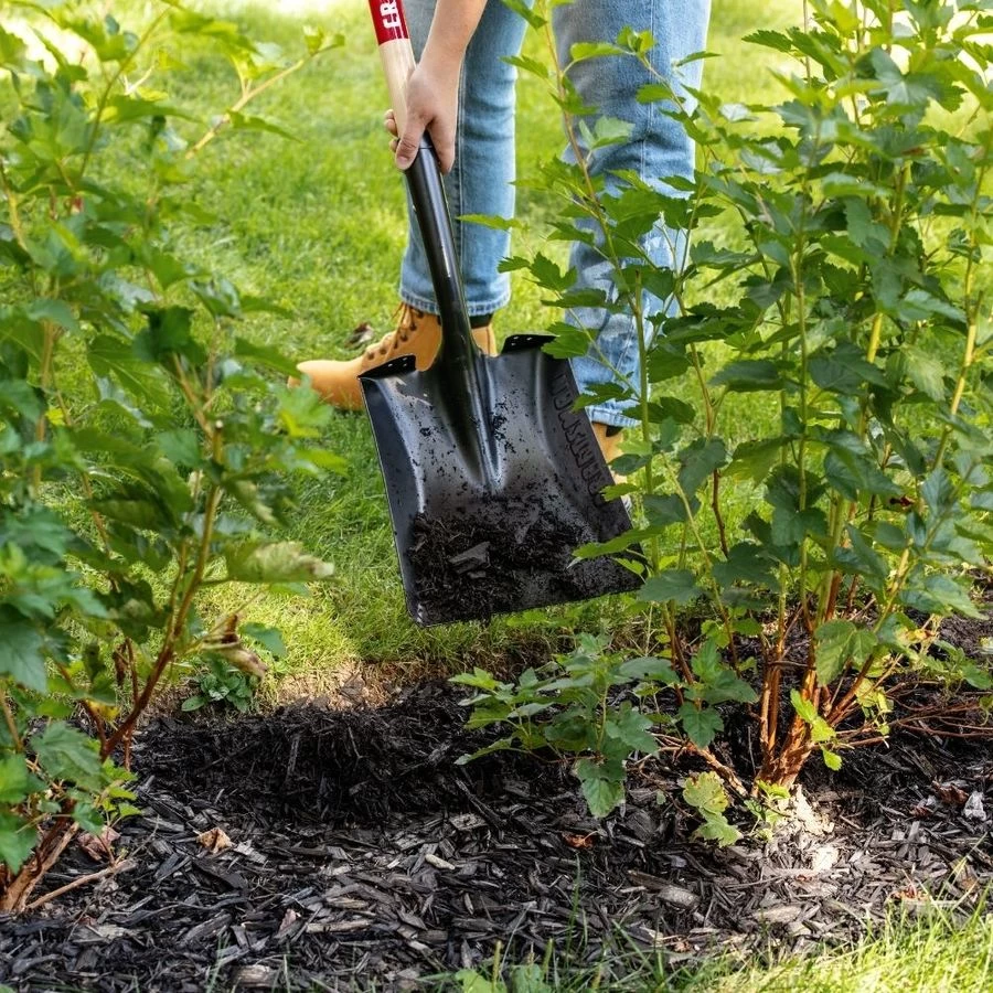 This showel has a heavy gauge tempered steel blade, profiled for easy soil cutting. Its extra-large footsteps allows for secure footing. It is perfect for transporting small quantities of earth, sand, top soil, dirt or other bulk materials. 1-year warranty.