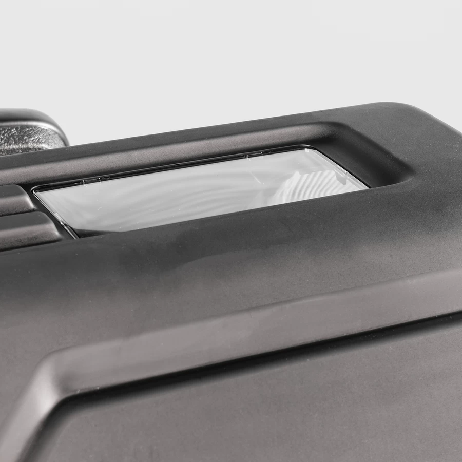 - Top hinged hood allows bags to be emptied without pivoting seat forward